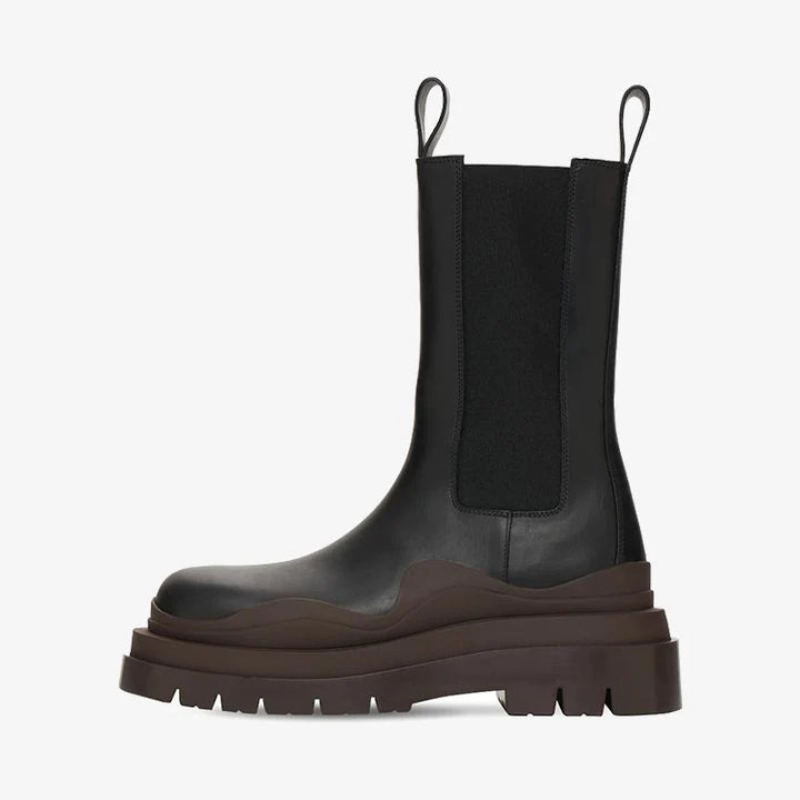These Chelsea boots are crafted from smooth calf leather, featuring a 50mm rubber sole for durability and style. Designed with front and back pull loops and elastic side inserts, they offer effortless slip-on wear. The leather lining ensures comfort with every step.
