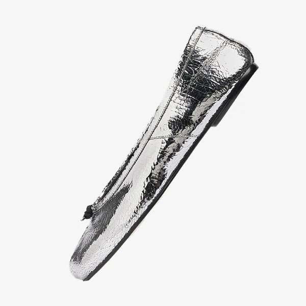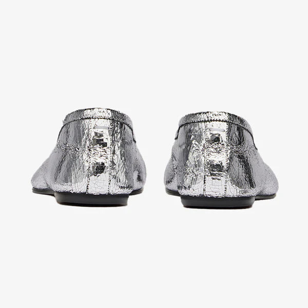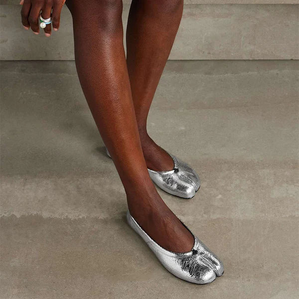 These ballerina flats are crafted from leather with a striking broken mirror effect. Featuring the iconic Split-toe, inspired by the traditional Japanese sock from the 15th century, they embody a perfect blend of heritage and contemporary design. The delicate cotton knot and white stitching at the back complete the look with refined detail.