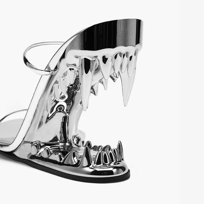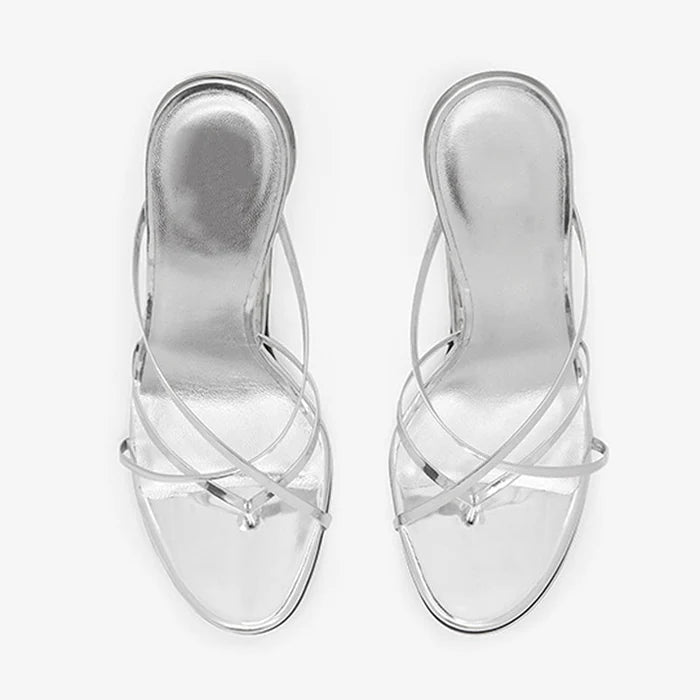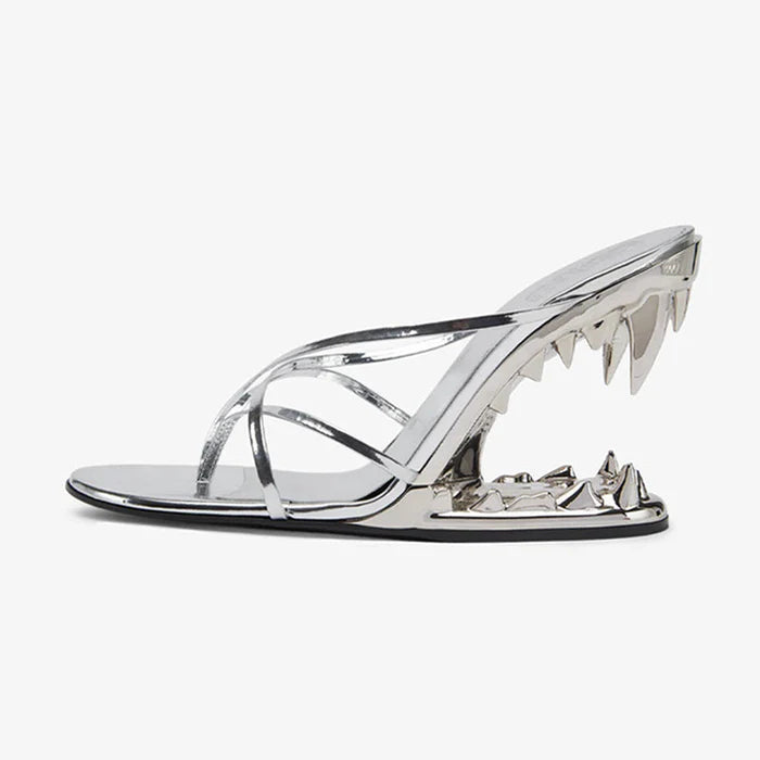 Sculpted Mirror Heel Sandals – Silver