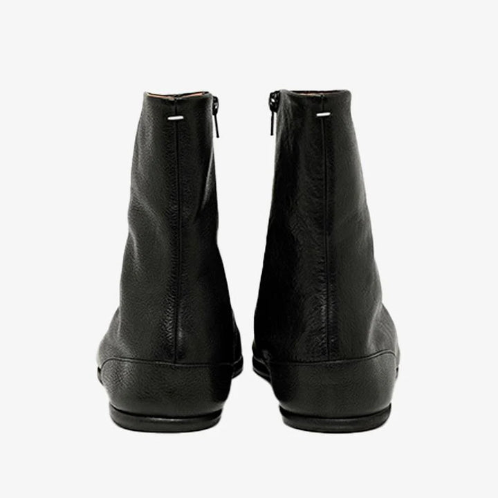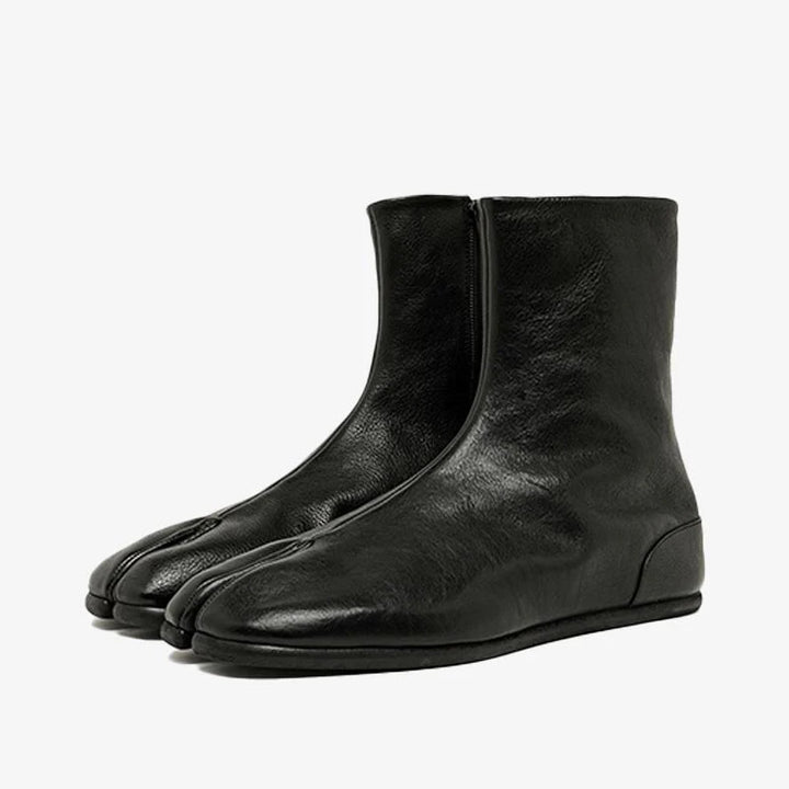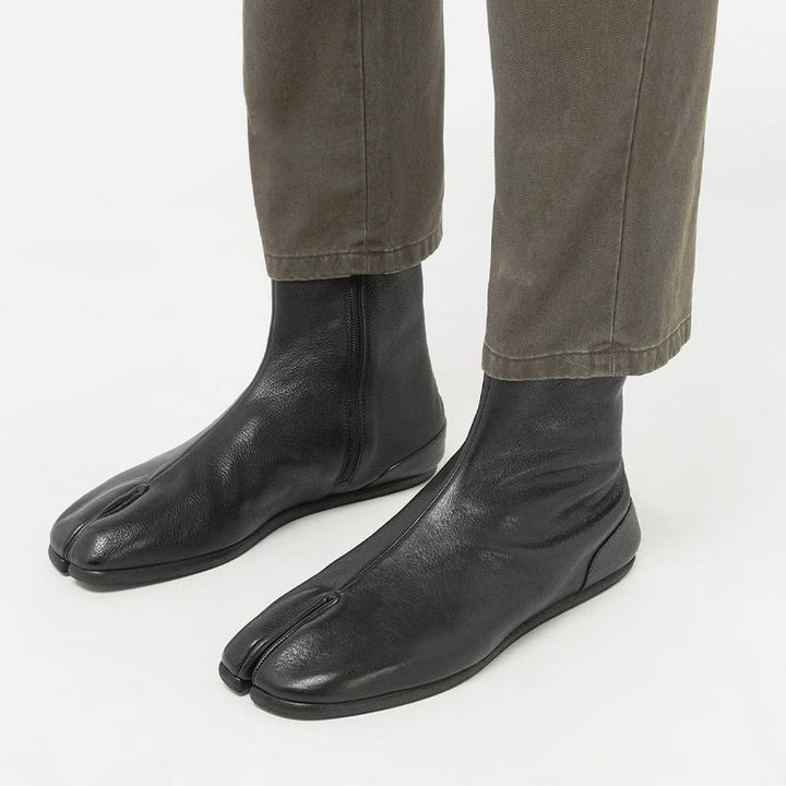 These split-toe ballet flats are crafted from calf leather with a delicate vamp. Featuring a round toeline, fully lined interior, and leather sole, they are suitable for careful outdoor wear.